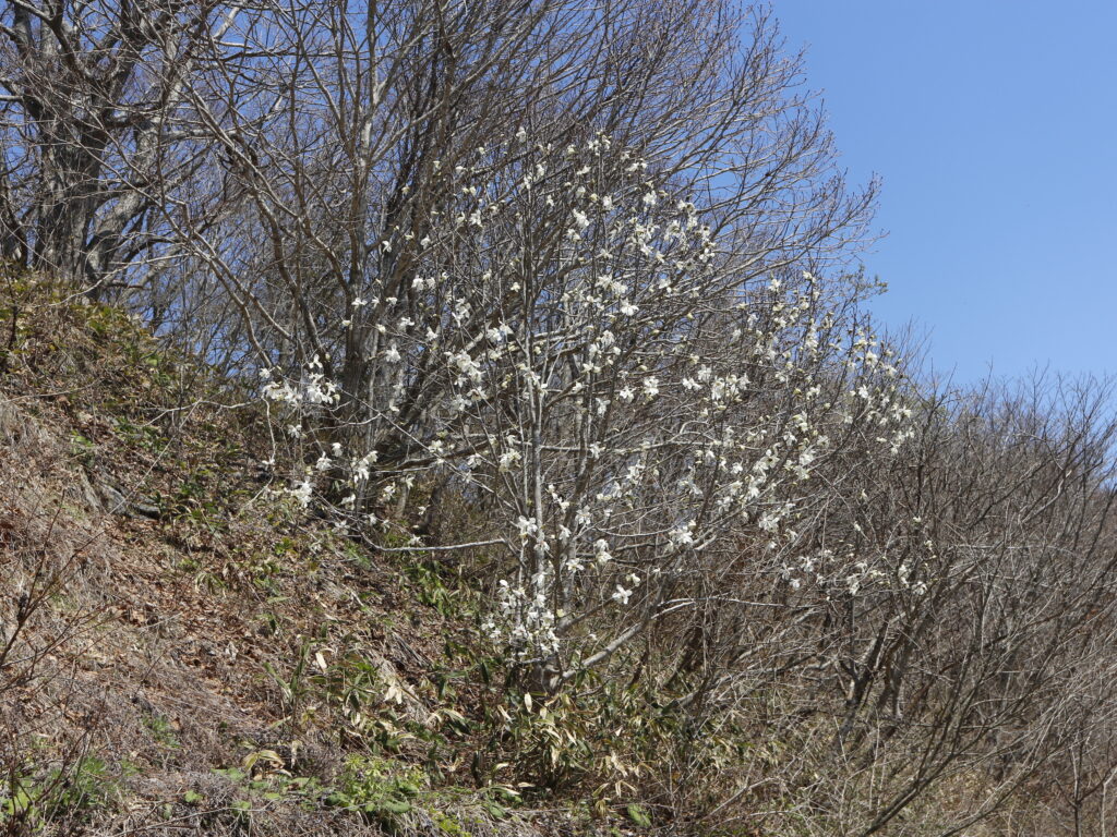 今年初めて函館山千畳敷コースを歩いてきました。良いお天気で、青い空に白いキタコブシの花が映えてきれいでした。咲いていたお花を紹介します。